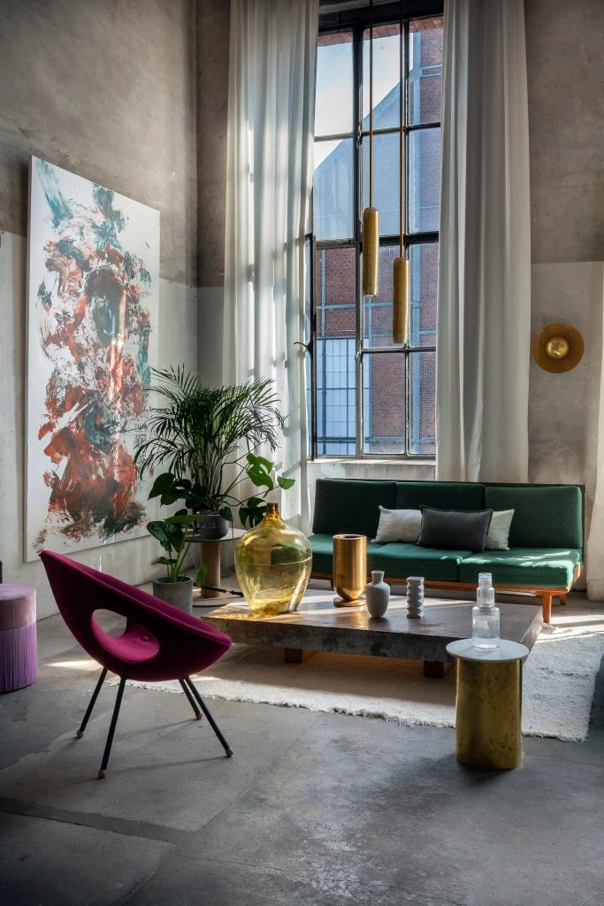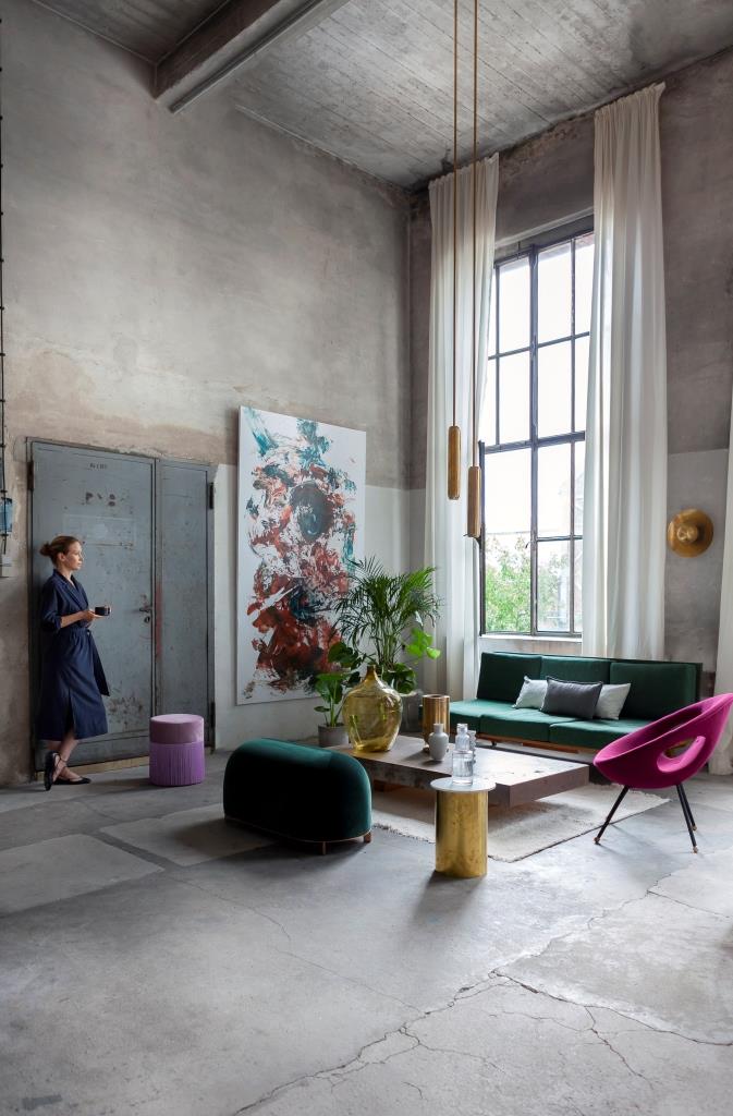 Continua Ewelina: «Abbiamo fatto solo alcuni interventi base, per lo più da soli. Ci piacevano i muri imperfetti e volevamo mantenere il magazzino così com’era, aggiungendo qualche bel mobile. Il nostro spazio cambia costantemente, dipende molto dal progetto artistico a cui sto lavorando. Mi piace anche sperimentare nello spazio quando si tratta di interni, design o arte, lasciandomi ispirare dalle vibrazioni e dal mood del momento».