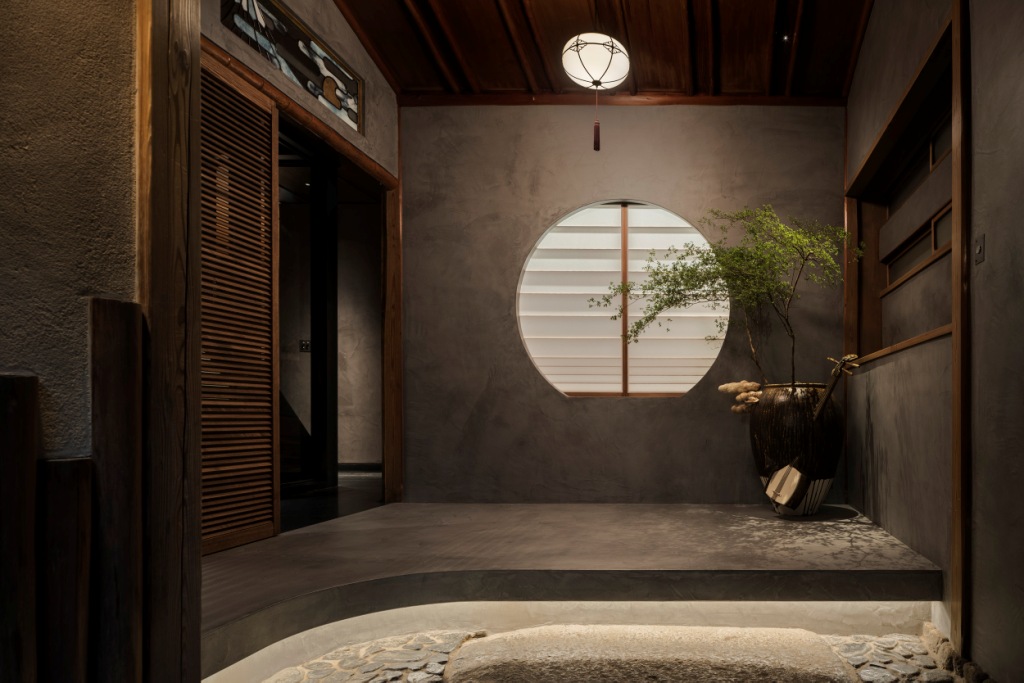 Oggetto di un accurato restauro conservativo, Trunk(House) si vale della collaborazione dello studio di interior design giapponese Tripster che insieme a Trunk Atelier ha selezionato le opere d’arte e gli esclusivi arredi che compongono la struttura. L’ingresso in pietra è stato riportato alla sua forma originale; accanto a esso, le pareti in malta grigia, i pavimenti a terrazzo scuro, i paraventi in carta, i soffitti dotati di pannelli in legno e una finestra decorativa di vetro colorato rileggono in chiave contemporanea l’architettura tradizionale dell’edificio.