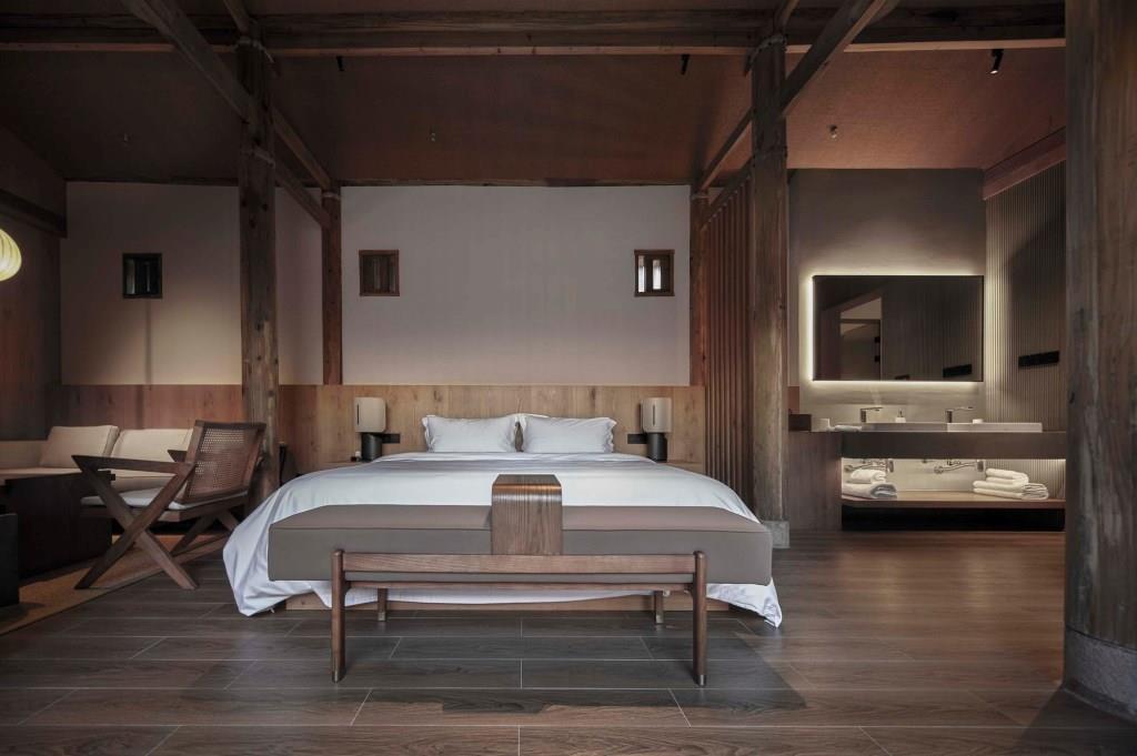 Oltre alle abitazioni il resort comprende una serie di spazi dedicati alla socialità come un ristorante e una suggestiva casa da the. Nel primo, un esteso uso di tecniche di progettazione moderne ha consentito di mantenere una piena coerenza formale con l’architettura e i materiali locali, mentre la seconda è stata concepita come spazio esperienziale che immerge l’ospite nelle raccolte atmosfere di un rito millenario grazie a arredi antichi e richiami ai colori e texture tipici della regione.