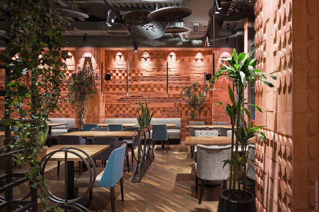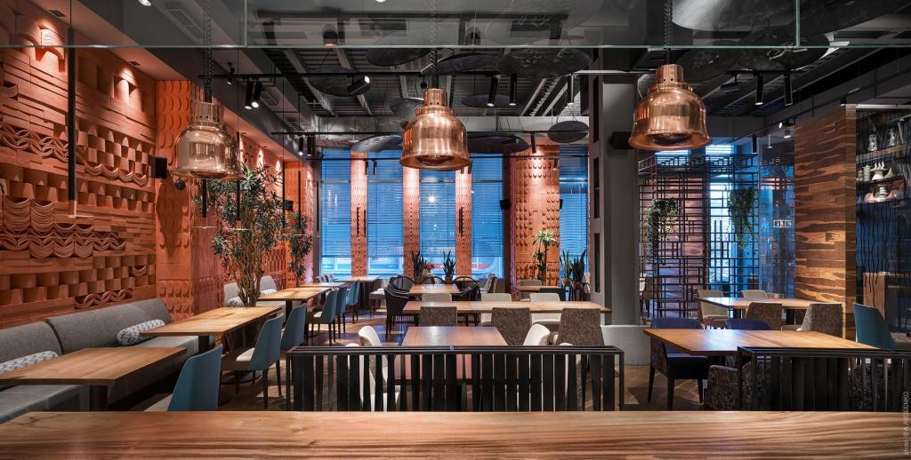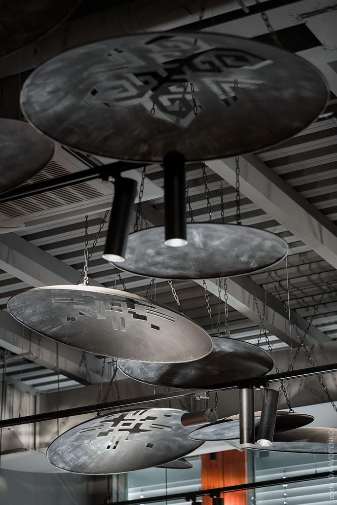 Loft Buro sperimenta unendo differenti suggestioni: un tappeto dell’Arzebaijan che diventa un mosaico, un grande forno tandori al centro del locale e degli wok trasformati in elementi decorativi. Un originale mix-and-match etnico per un ristorante asiatico a Kiev