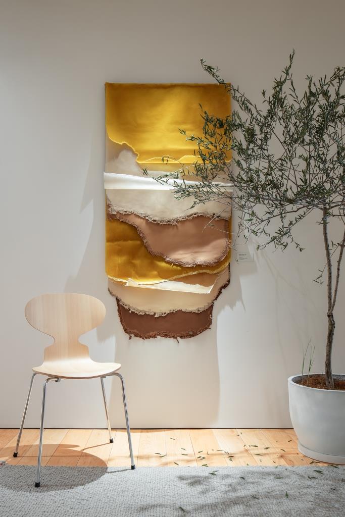 Un esplicito richiamo all’arte della conciatura di cui Ecco è maestra, le cui variazioni cromatiche riproducono i vari stadi di lavorazione della pelle e, insieme, i cambiamenti nell’aspetto delle mura dettati dal tempo.