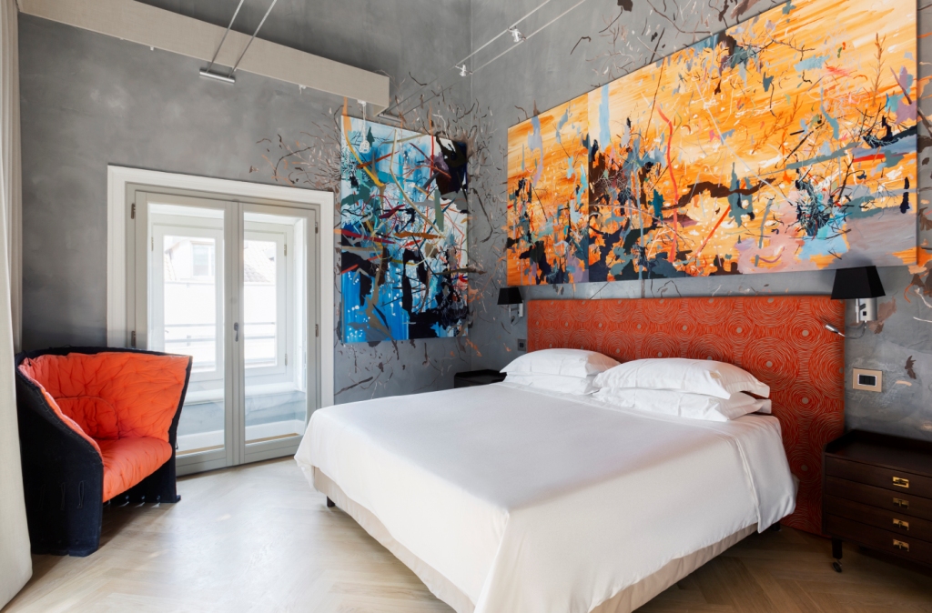 Un vero e proprio art hotel in cui si può ammirare una coinvolgente successione di dipinti, con il meglio dell’arte contemporanea italiana e anche con importanti testimonianze della scena artistica internazionale, come il cinese Liu Bolin, il fotografo e pittore Julian Lennon, il fotografo Szymon Brodziak, la coppia di artisti russi Dubossarsky & Vinogradov, l’artista argentina Nina Surel, lo spagnolo Felipe Cardeña, celebre per i suoi pattern floreali e i suoi quadri di stoffe multietniche, la giapponese neo-pop Tomoko Nagao, fino ad alcuni tra i più interessanti esponenti della pittura contemporanea uruguayana e sudamericana, come Vicky Barranguet, Eduardo Cardozo, Fernando López Lage e Rita Fischer.