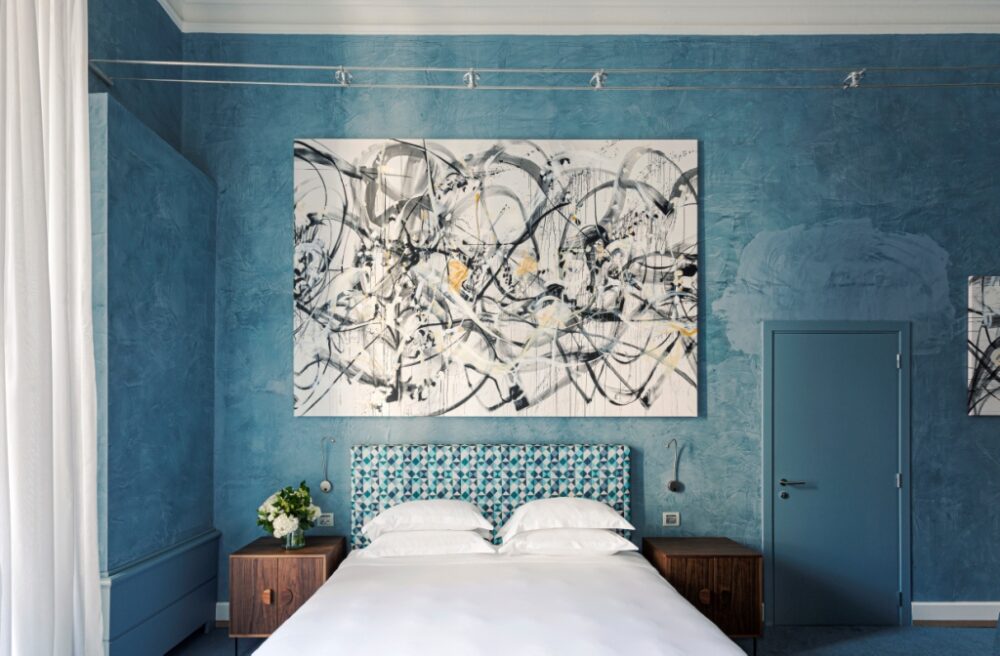 Un vero e proprio art hotel in cui si può ammirare una coinvolgente successione di dipinti, con il meglio dell’arte contemporanea italiana e anche con importanti testimonianze della scena artistica internazionale, come il cinese Liu Bolin, il fotografo e pittore Julian Lennon, il fotografo Szymon Brodziak, la coppia di artisti russi Dubossarsky & Vinogradov, l’artista argentina Nina Surel, lo spagnolo Felipe Cardeña, celebre per i suoi pattern floreali e i suoi quadri di stoffe multietniche, la giapponese neo-pop Tomoko Nagao, fino ad alcuni tra i più interessanti esponenti della pittura contemporanea uruguayana e sudamericana, come Vicky Barranguet, Eduardo Cardozo, Fernando López Lage e Rita Fischer.