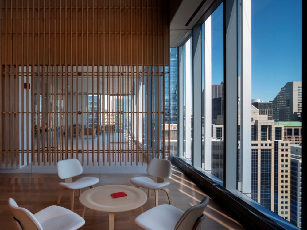 Alvisi Kirimoto trasforma il 32mo piano di un grattacielo a Chicago, oggi headquarter del committente. Pareti di legno, che si smaterializzano in lamelle verticali per calibrare il grado di privacy e luminosità, sono le principali direttrici del progetto