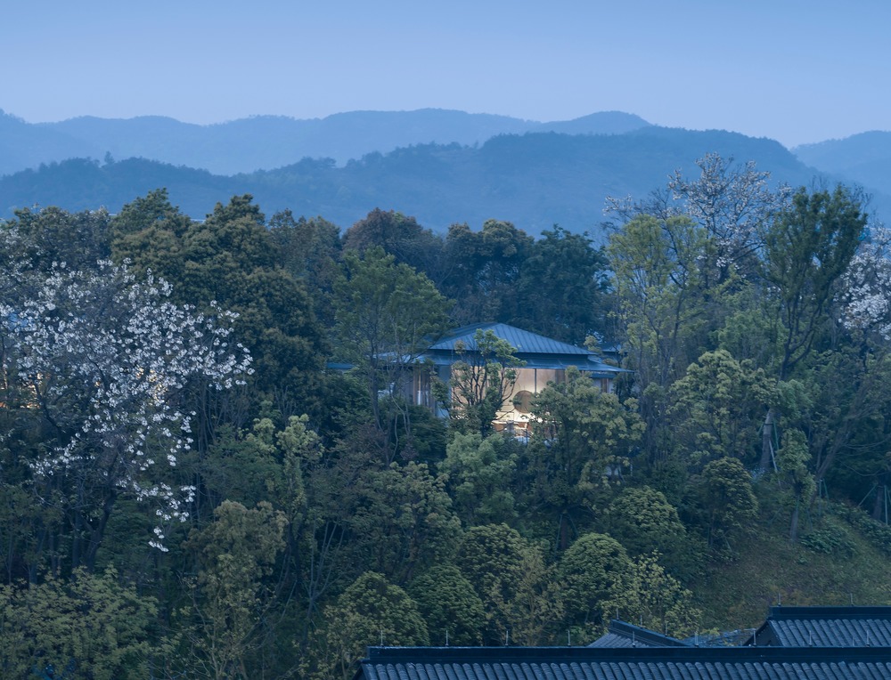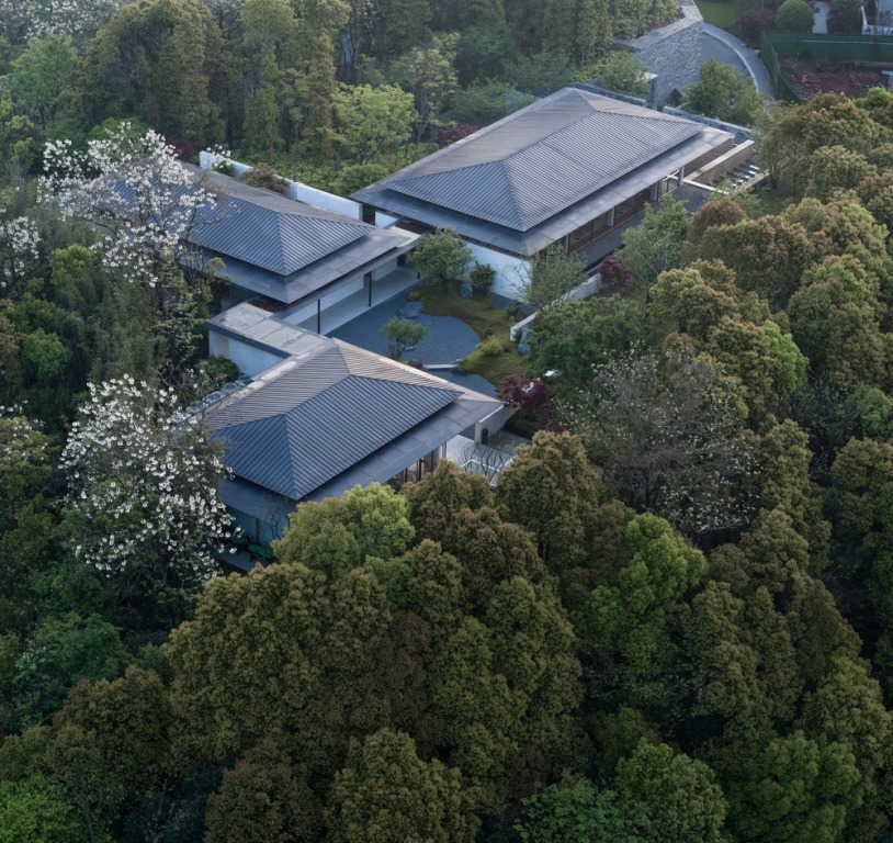 Il Living Experience Centre di Yiwu è al centro di un’espansione del villaggio di Zongtang verso le pendici della collina, il cui masterplan e progetto di paesaggio è stato curato da Collective Landscape Design, che ha deciso di conservare fra le due aree residenziali un brano della foresta e una parte di uno stagno esistente.