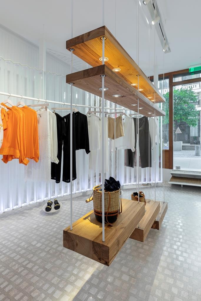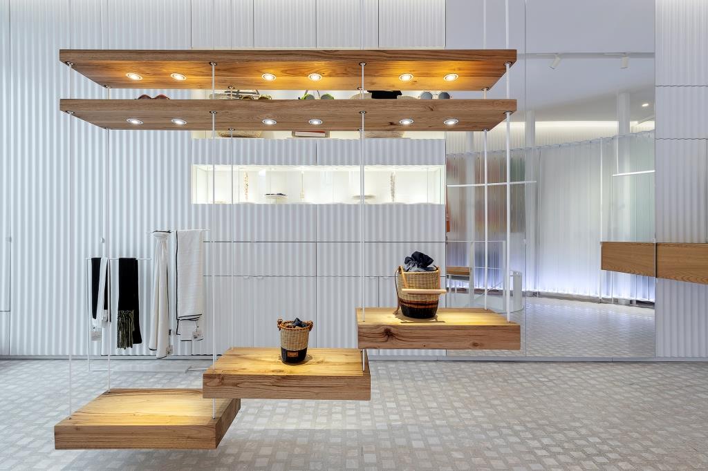 “L’intento era realizzare uno spazio che rispecchiasse i valori del brand, ma anche uno sfondo leggero per la presentazione di capi e prodotti che cambiano stagionalmente”, hanno spiegato la londinese Katerina Kourkoula e il tedesco Hannes Livers Gutberlet, che hanno fondato En Route Architecture proprio ad Atene con un team internazionale.