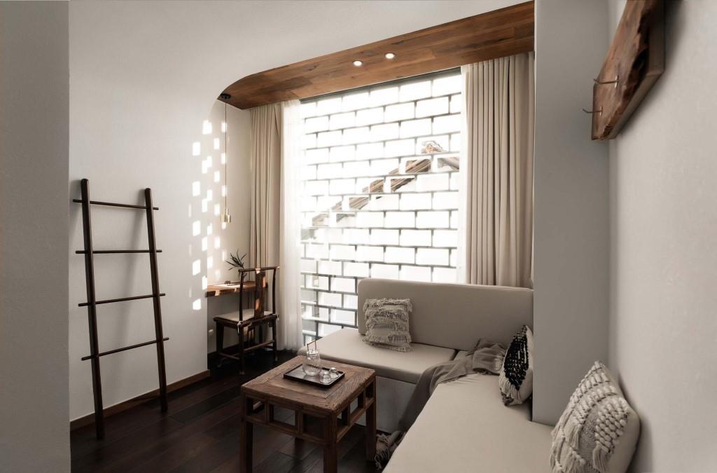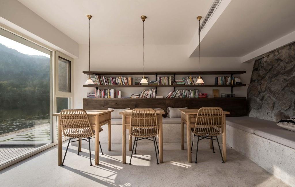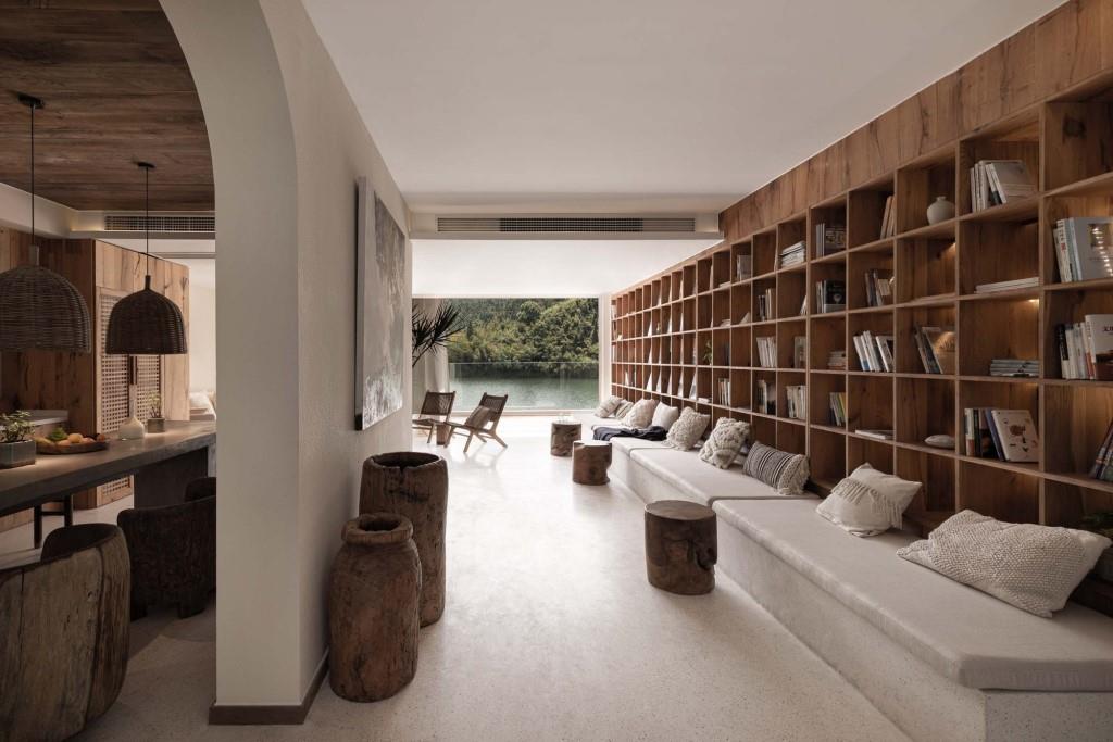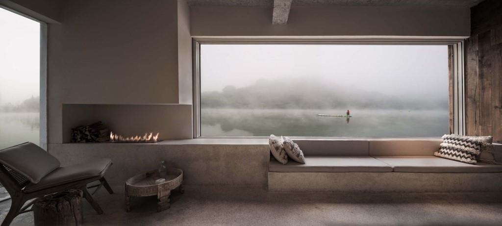 Le aree comuni al piano terra sono distribuite in una cucina, un’area lettura e una lounge, declinate in una palette di colori tenui che fa da quinta agli arredi in legno, a una grande libreria e a uno scenografico camino, tutto valorizzato dalla vista delle tranquille acque del lago offerta dalle pareti vetrate a tutta altezza. Solo cinque le suite, tutte ospitate ai piani superiori, curate in ogni minimo dettaglio e connotate ognuna da un interior design personale ed esclusivo.