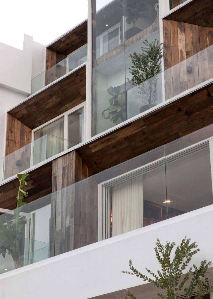 La trama compositiva dell’edificio è risolta da una sovrapposizione di volumi cubici che ne scandiscono i prospetti, alleggeriti da ampie superfici vetrate, loggiati e dettagli lignei che incorniciano gli interni mantenendo una rigorosa gerarchia spaziale.