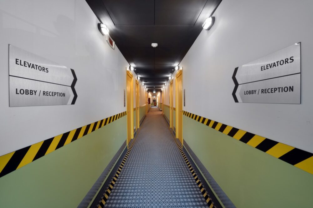 Il secondo progetto, sempre curato per il gruppo Meininger, riprende un altro simbolo della cultura italiana, il grande cinema, e uno dei suoi luoghi iconici – Cinecittà – per creare a Roma un hotel il cui interior design è interamente dedicato al “silver screen”, ai suoi divi e al pittoresco mondo che vive dietro le quinte. Spazi comuni e camere compongono una sorta di backstage arricchito da oggetti e arredi usati sui set. Mentre i corridoi riproducono i red carpet delle kermesse cinematografiche, e a ricomporre la narrazione la lounge, dall’interior che riproduce il foyer delle sale cinematografiche. Insomma, una full immersion nella magia del cinema. Anche per noi che l’abbiamo progettata.