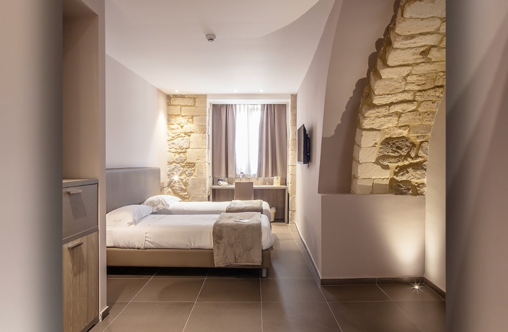 Prima di tutto bisogna capire il luogo e valorizzarlo. Questo è avvenuto in progetti importanti come il Cugó Gran Macina Grand Harbour a Malta o il San Giorgio Palace a Ragusa Ibla. Due contesti molto differenti, il primo inserito all’interno delle fortificazioni che circondano la città, il secondo, integrato nel costone roccioso, risente moltissimo dell’importante influenza del barocco della valle di Noto. Due situazioni nelle quali abbiamo utilizzato linguaggi differenti, in entrambi i casi senza ricorrere a falsi storici. Il nostro approccio nei confronti della storia è senza inganno, interveniamo in modo contemporaneo, sia dal punto di vista ideologico che nell’utilizzo dei materiali, ma con rispetto. Anche di chi poi gestirà l’attività commerciale.