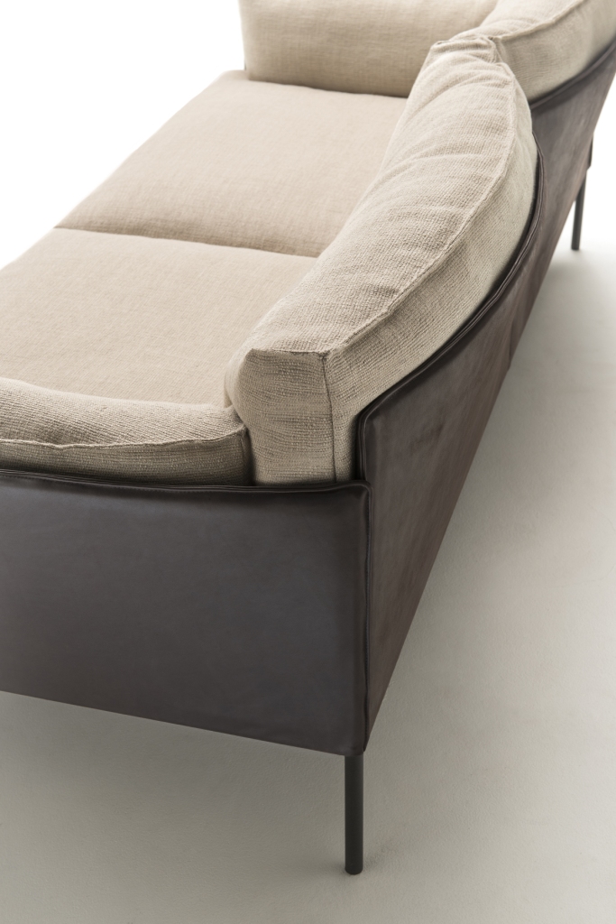 Suo, infatti, il design di Green, poltrona e divano rialzati su un sottile piedino, dove la scocca esterna, strutturata ma morbida, accoglie ampie cuscinature. Curve appena accennate per una collezione dal mood rilassato e disinvolto, ma dove tutto è come al solito impeccabile.
