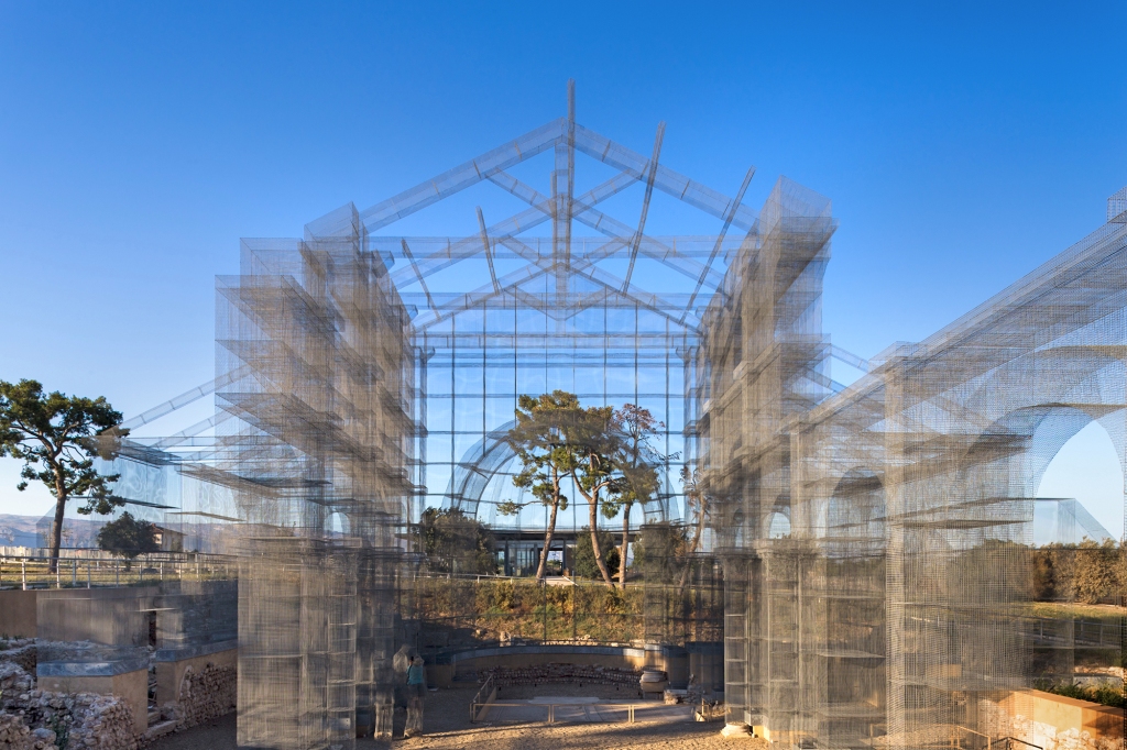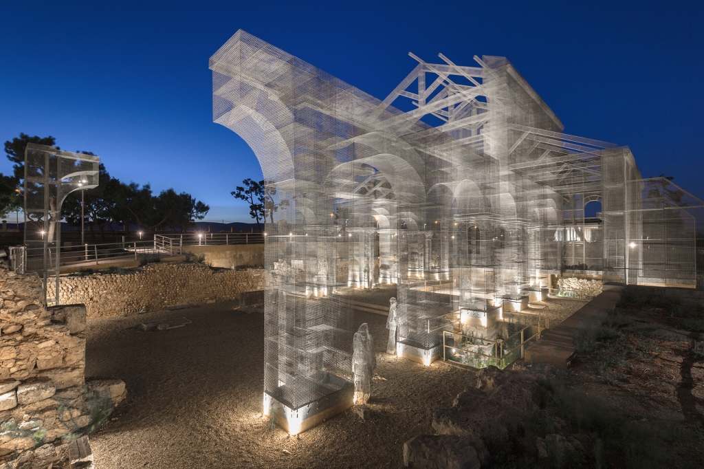 Si tratta di una scultura in rete metallica alta quattordici metri che ripropone le sembianze della basilica paleocristiana di Siponto e il cui impatto emotivo è così diretto da attrarre un gran numero di visitatori e stimolare molteplici livelli di lettura. La scelta della Soprintendenza di optare per un’installazione piuttosto che per un manufatto di protezione dei resti ha portato a un risultato senza precedenti, tanto da meritarsi nel 2018 la Medaglia d’Oro all’Architettura Italiana. Sebbene siano numerosi gli esempi di ricostruzione di manufatti storici, solo a Siponto l’assenza e la presenza della basilica sono percepite contemporaneamente con grande forza. Assenza e presenza, materia e disegno, interno ed esterno, paesaggio ed edificio convivono simultaneamente.