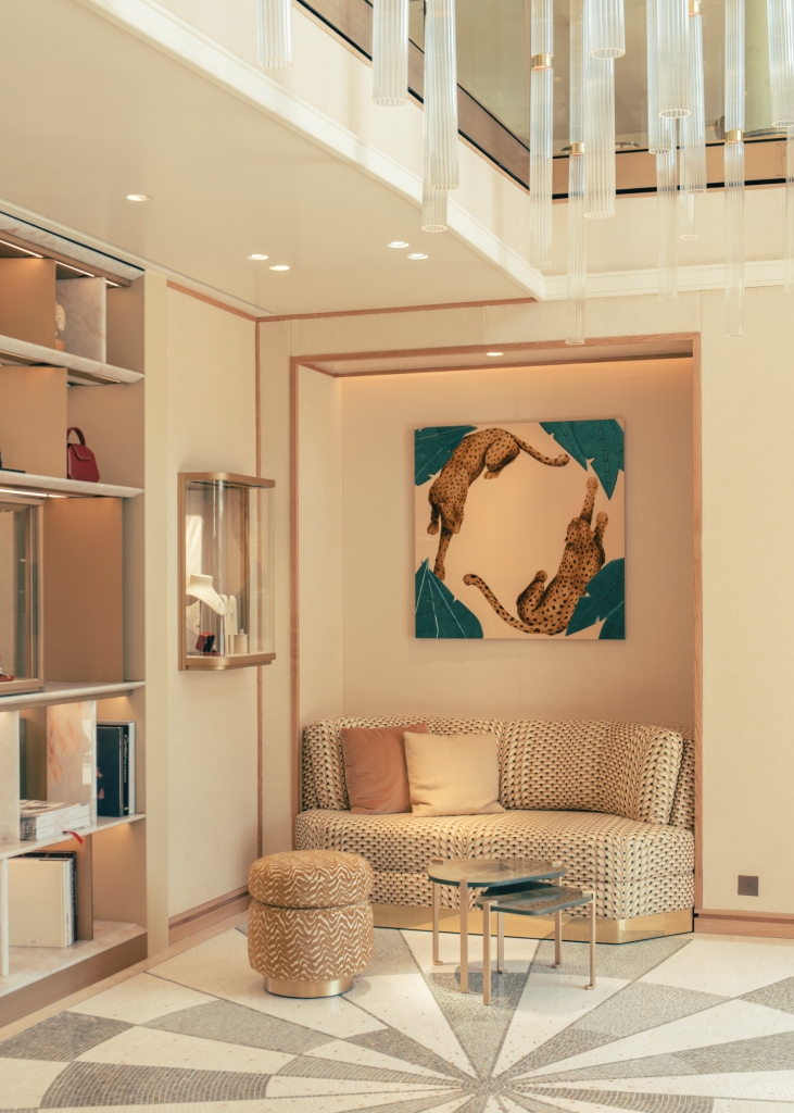 I mobili della collezione saranno affiancati da pezzi unici, realizzati a mano in collaborazione con i migliori artigiani e artisti, come un backgammon di onice e una lampada di ossidiana. Rendez-vous a novembre per l’apertura.
