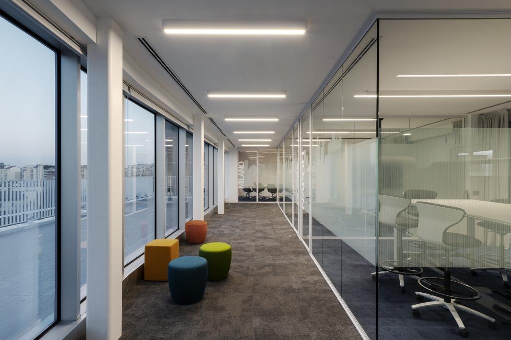“L’evoluzione delle forme del lavoro contemporaneo ha innescato una ridefinizione dell’identità degli ambienti office, che oggi diventano sempre più contenitori di relazioni e acceleratori di idee supportati da servizi e facility. Ambienti concepiti all’insegna della trasversalità e dell’ibridazione, e perciò sempre più lontani dalla rigidità distributiva e funzionale dell’ufficio tradizionale. E, a una scala superiore, inseriti in un ambito urbano non più concettualmente e fisicamente separato, ma al contrario affluente di una fitta rete di relazioni”.