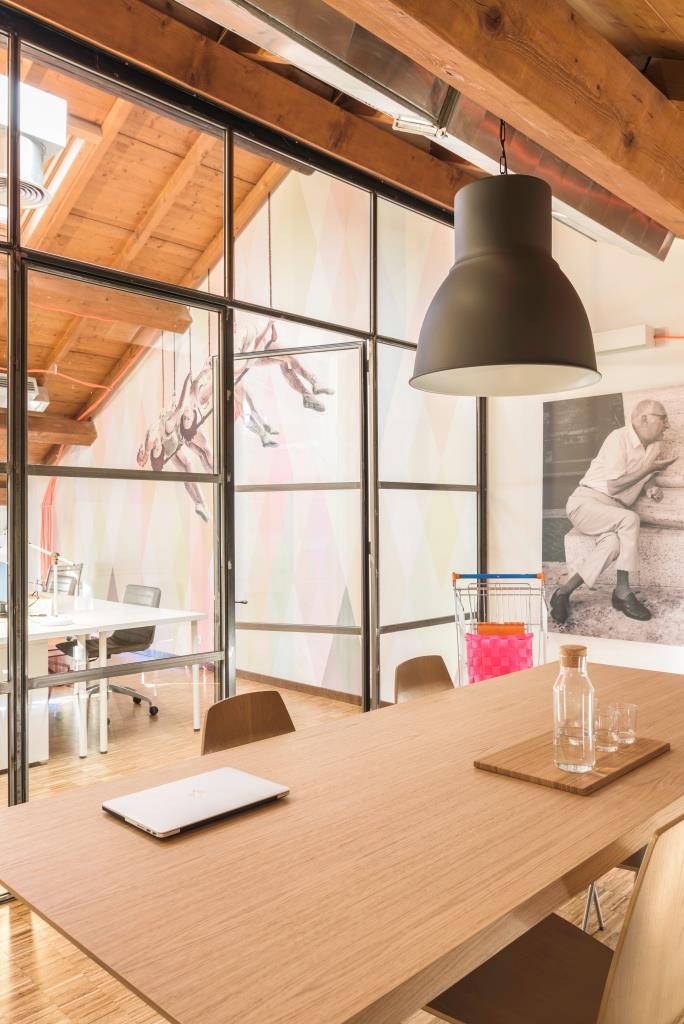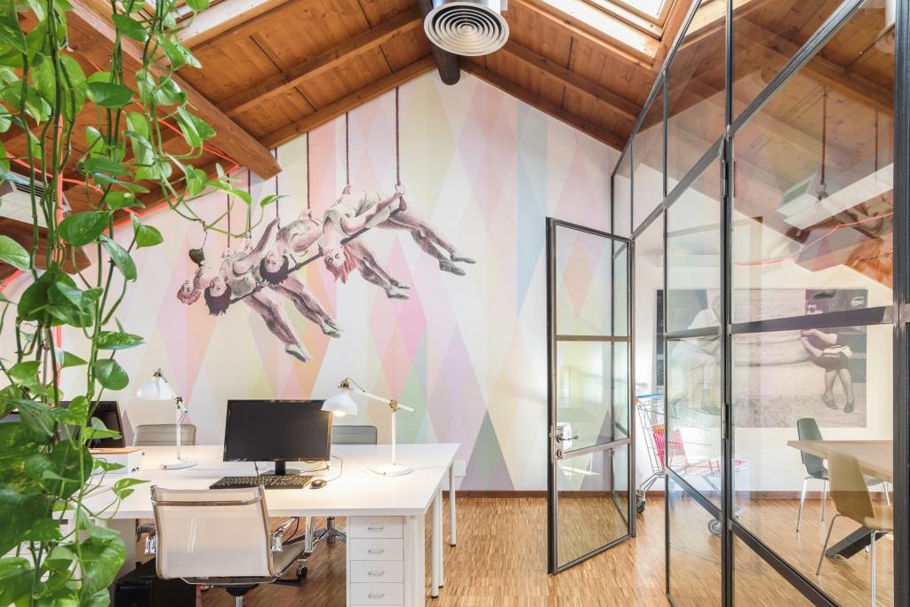 Al nostro team manca molto il rapporto umano, il confronto diretto, fondamentale quando si opera in ambito creativo. Immagino che, passata l’emergenza, ci sarà un nuovo modo di vivere le sedi, più libero da orari e costrizioni. Si tenderà ad andare in ufficio quando serve, quando è necessario incontrare i colleghi, lavorando da remoto per il resto del tempo. Da noi funzionerà così. La sede di Nomade ci rappresenta, per me è bellissima: è verde, e ha una carta da parati con delle trapeziste a cui assomigliamo. Vorrei anche accennare alla sede milanese di Libera Brand Building, in un ex edificio industriale vicino alla Fondazione Prada. Un progetto dove abbiamo cercato di esaltare i caratteri legati al passato produttivo e dove il nostro intervento si nota per contrasto.