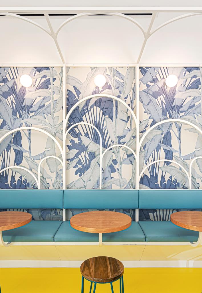 Il lavoro per The Pure, in collaborazione con Asterisco Creative Agency di Torino. Un salad-bar nel centro di Milano che, nell’idea della committenza, dovrebbe essere il primo di un franchising. Abbiamo pensato di prendere il simbolo del capoluogo lombardo – la Madonnina – trasformandola in un’icona contemporanea, ovvero una ragazza con aureola, tatuaggi e jeans strappati che campeggia su una delle pareti. In questo modo il locale è legato al contesto, e le future aperture potrebbero essere personalizzate con il re-boot delle icone di tutte le città. Penso a un marinaio o una sirena per Ibiza, una regina per Londra… Un altro progetto interessante è Bis Panzerotto, sempre a Milano, in zona Navigli. Qui abbiamo reinterpretato con leggerezza lo stile delle masserie pugliesi, con blocchi di pietra a pavimento, pareti in calce e lanterne in metallo. Siamo riuscite a creare un luogo dal forte carattere, unico nel contesto, pur rispettando un budget abbastanza ridotto.