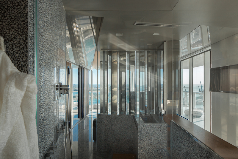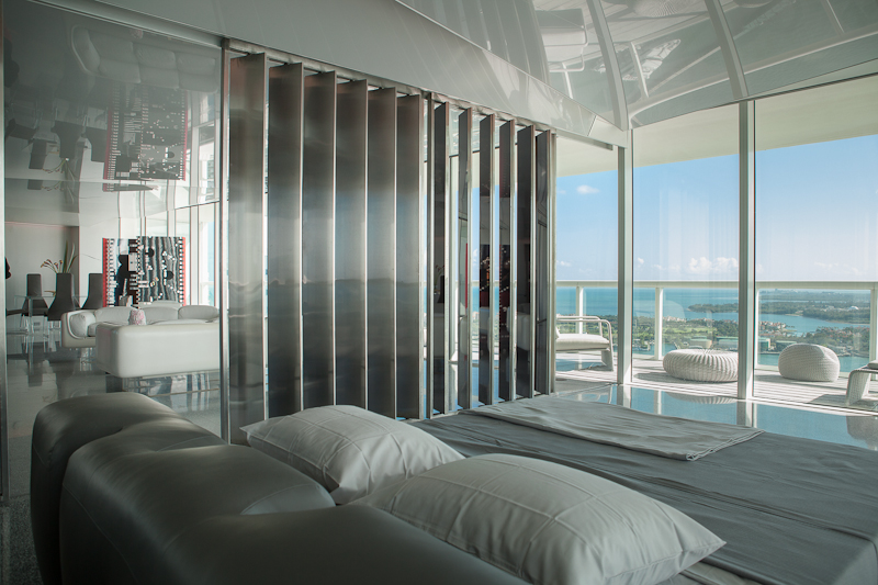 Una costante dei miei progetti è l’idea di amalgamare gli spazi interior con gli esterni per creare un legame con il sito del progetto. Penso che l’architettura debba riflettere o amplificare le qualità del luogo che la ospita. Nell’Icon Residence, un condominio a South Beach, abbiamo rivestito il soffitto con uno strato di latex satinato e abbiamo creato delle pareti interne con imposte movibili e inserti a specchio. Il risultato è un gioco di riflessi che porta all’interno delle abitazioni l’ambiente della baia esterna. Un altro progetto esemplificativo è il St. Regis, un appartamento a Bal Harbour, il motivo principale della casa è un muro a fisarmonica realizzato in plaster con inserti in vetro zigrinato che ammorbidiscono ed esaltano la qualità della luce proveniente dall’esterno. Lo stesso approccio ha informato Alchemist, un negozio open-air posto in cima a un garage multipiano. Tramite un sistema di specchi angolari abbiamo ottenuto un effetto cinetico e interattivo con la città, incorporando all’interno dello store i riflessi del cielo ma anche i movimenti del traffico e delle persone sul piano strada.