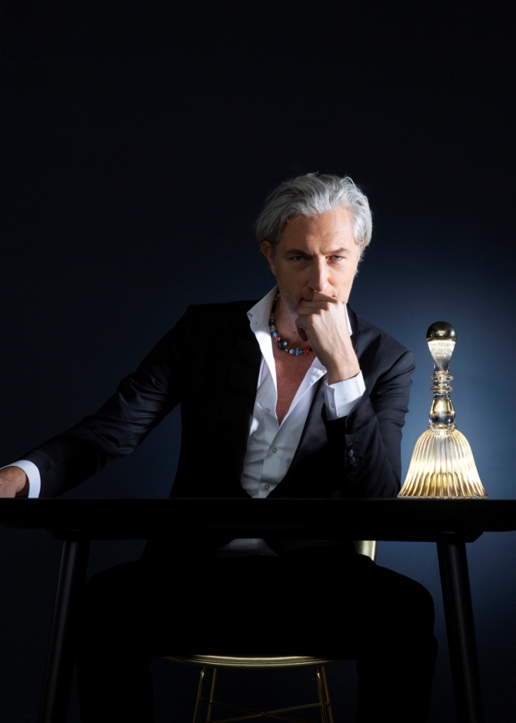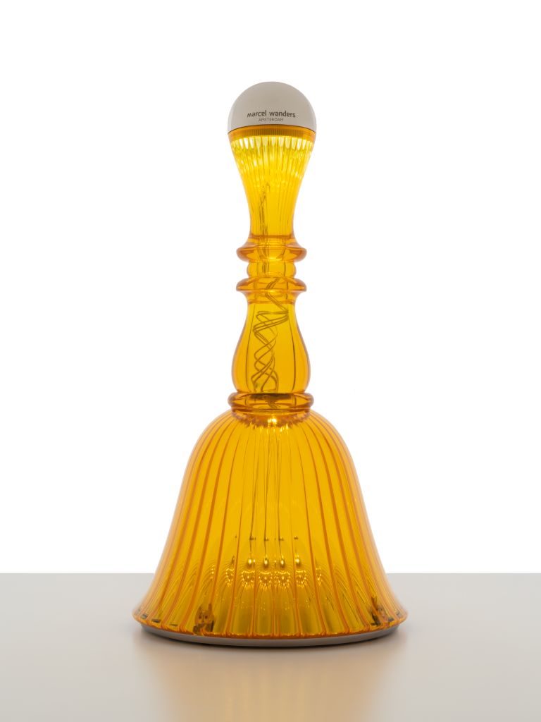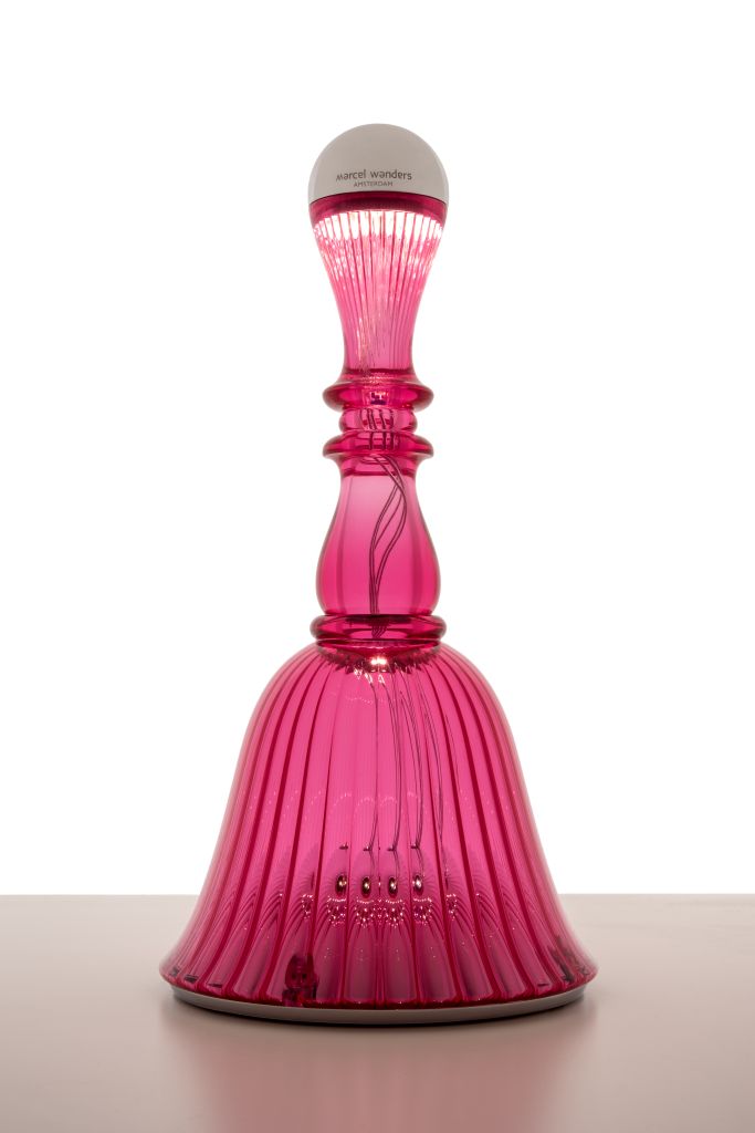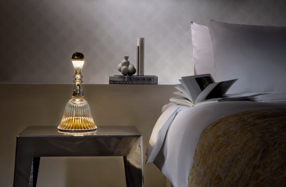 Bella di Marcel Wanders è l’originale lampada da tavolo e comodino che emette una luce dai colori tenui e delicate melodie al tocco del suo paralume