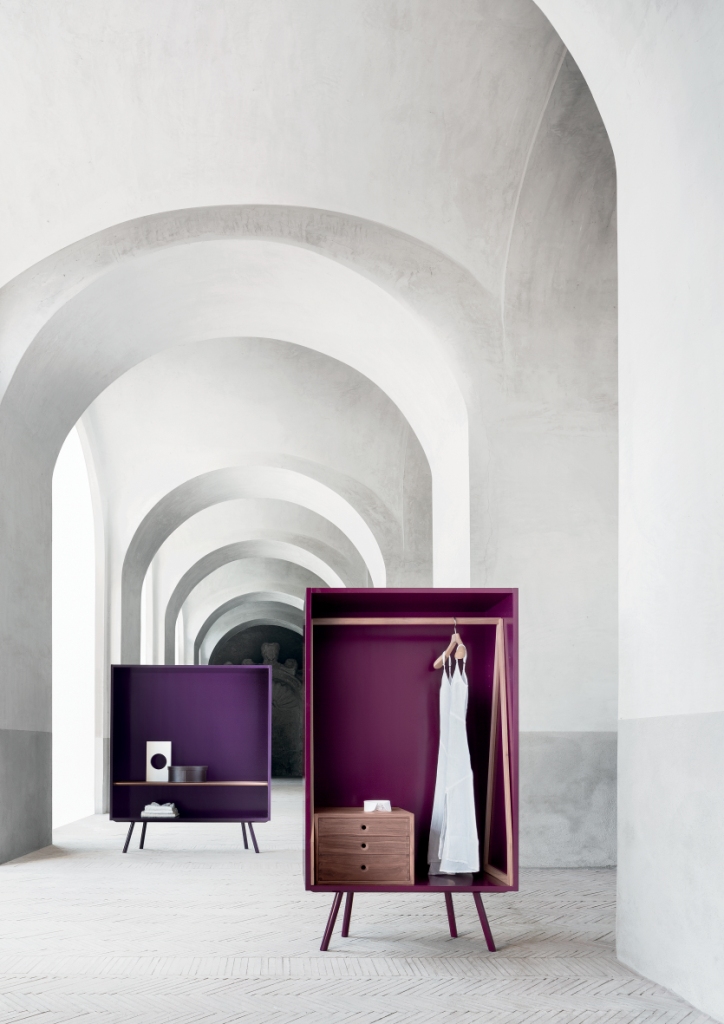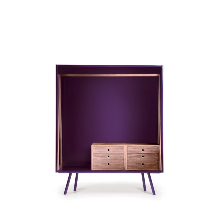 Una serie di grandi contenitori colorati progettati per riuscire nel contempo a organizzare, esporre e incorniciare sia abiti che oggetti, come in una quinta teatrale, che si può personalizzare e cambiare nel tempo.