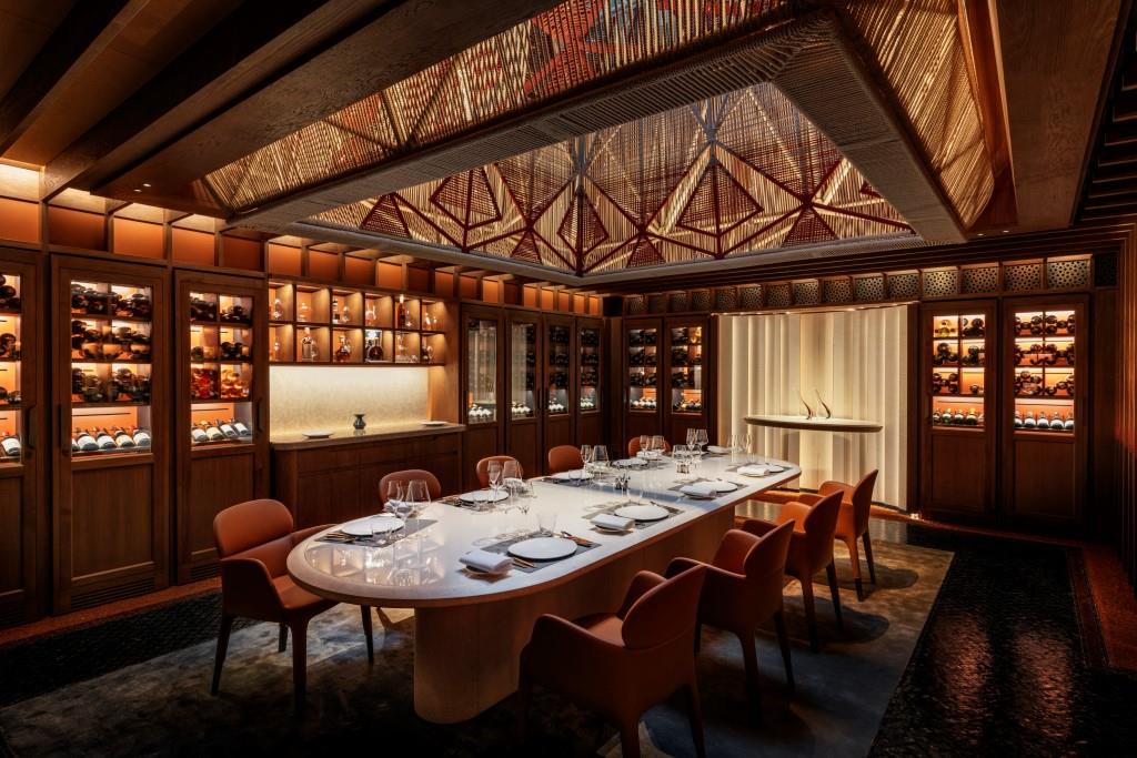 Situato vicino ai giardini, il Bar Marocain è un luogo tranquillo dove gli ospiti possono prendersi del tempo per rilassarsi. Un grande bancone con un piano metallico, che richiama la cultura locale, accoglie gli sgabelli Ester con telaio in bronzo satinato e rivestimento in pelle color cognac, tonalità in perfetta sintonia con l’essenza del posto. Gli stessi sgabelli arredano anche il Bar Churchill, uno spazio intimo e riservato con al centro un blocco di marmo nero scolpito.