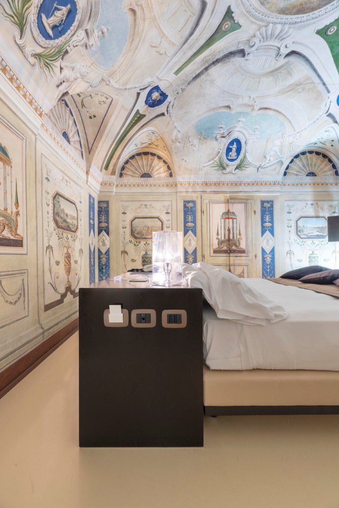 La tecnologia Vimar è però stata scelta anche per un altro fondamentale motivo: per mantenere intatte tutte le preziose testimonianze della storia come affreschi, intonaci, stucchi e pavimenti. L’esigenza era infatti quella di non intervenire con opere murarie e questo è stato possibile installando in ogni camera un modulo domotico multifunzione Vimar, un dispositivo da quadro che ha permesso di realizzare un impianto domotico senza dover eseguire interventi invasivi, ma semplicemente collegando il cavo Bus ai suoi ingressi e uscite.