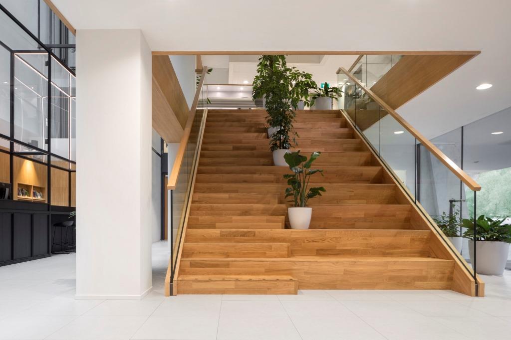 Ciò ha dato vita a un progetto che scandisce e delimita funzionalmente gli spazi interni attraverso setti modulari in legno di rovere, utilizzati in modo da creare una articolazione distributiva rigorosa ma al tempo stesso visivamente aperta.