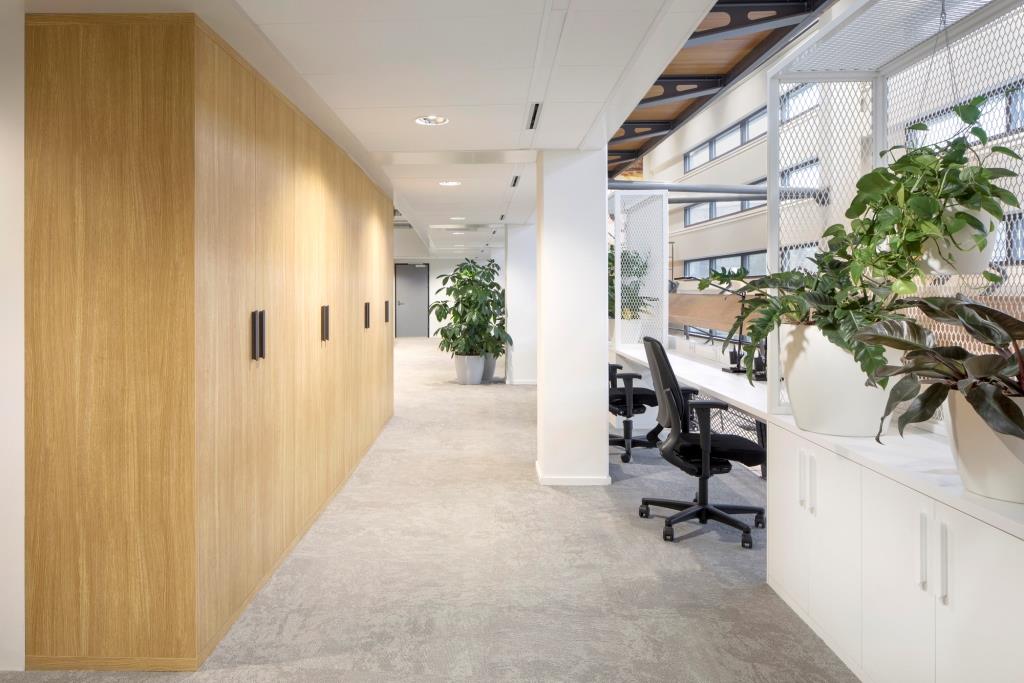 Una palette cromatica e materica essenziale, giocata sulle tinte del bianco e nero riscaldate da accenti di colore e dal legno naturale, abbinata a un’ampia presenza di piante da interni e serigrafie a tema, conferisce una ben definita identità comune a tutti gli spazi di Naturalis.