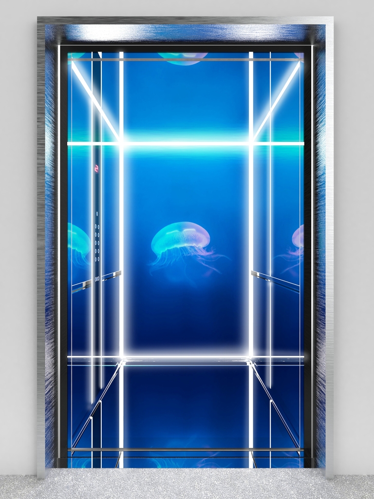 On Air è un sistema leggero, emozionale, fortemente caratterizzato dalla luce, che disegna in forma diretta o indiretta la geometria della cabina, ritagliando gli spazi dove si celano le sorgenti luminose. La componente ultravioletta UV-C delle lampade integrate nelle gole tecniche garantisce una sterilizzazione completa delle superfici, offrendo un ambiente assolutamente puro e sicuro, attivandosi in automatico solo in assenza di passeggeri a bordo, in fase di stand-by dell’ascensore.