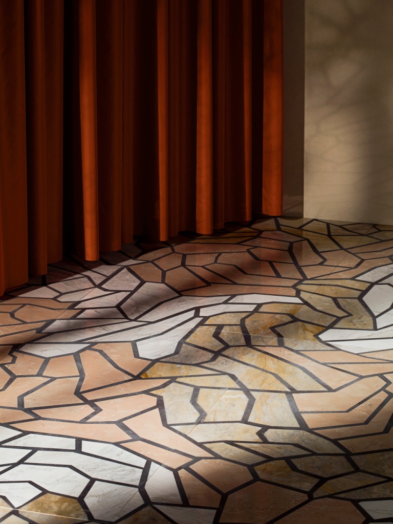Nella loro direzione creativa, Zanellato/Bortotto hanno deciso di coinvolgere altri due studi di progettazione di diversa provenienza geografica e professionale – Mae Engelgeer è una textile designer olandese, David/Nicolas uno studio libanese attivo nel campo dell’interior e dell’art design – proprio per esplorare approcci trasversali che raccontano le potenzialità del marmo come elemento di forte appeal grafico ed estetico che si declina in superfici e rivestimenti speciali.