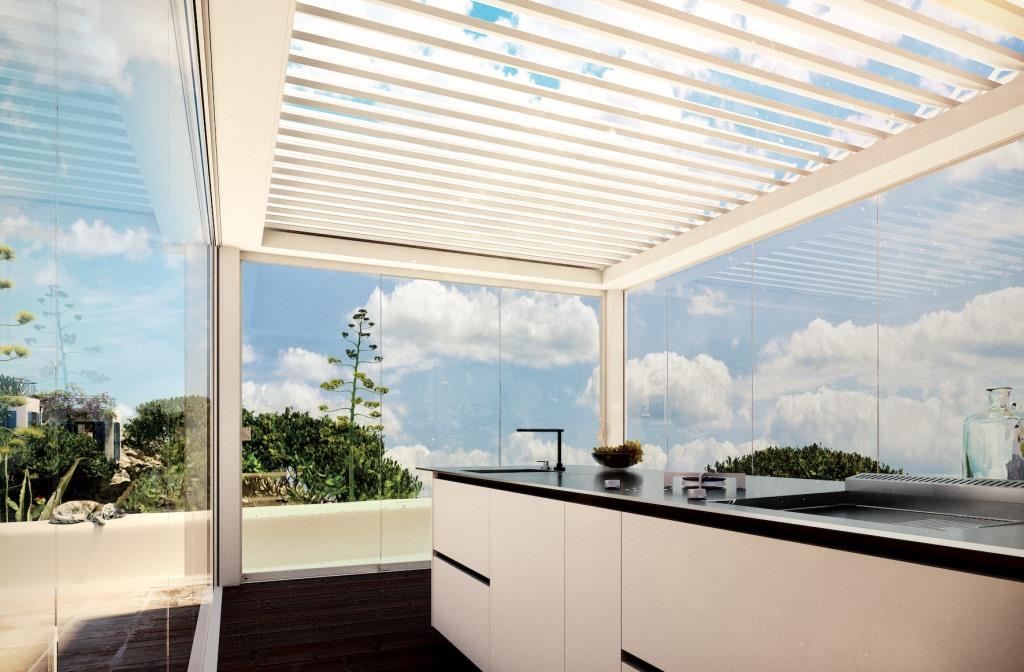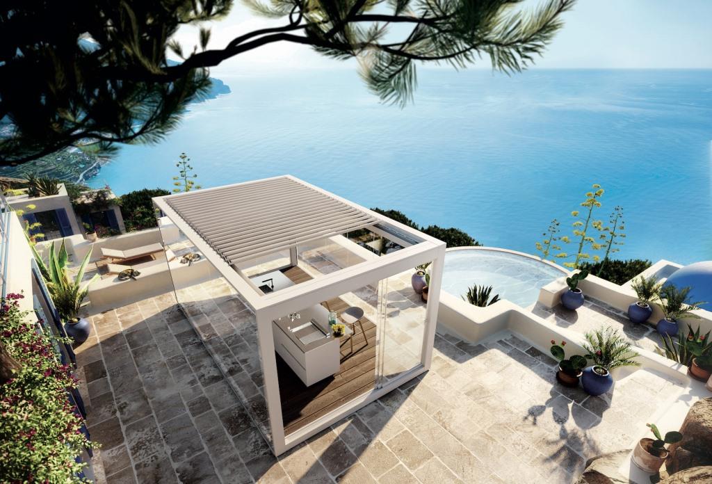 Anche sull’Isola di Santorini, la nuova bioclimatica di Pratic riscrive le regole del lifestyle con un design rivoluzionario: per la prima volta, una pergola moltiplica la bellezza del paesaggio, attraverso vetrate riflettenti che offrono una privacy inedita.