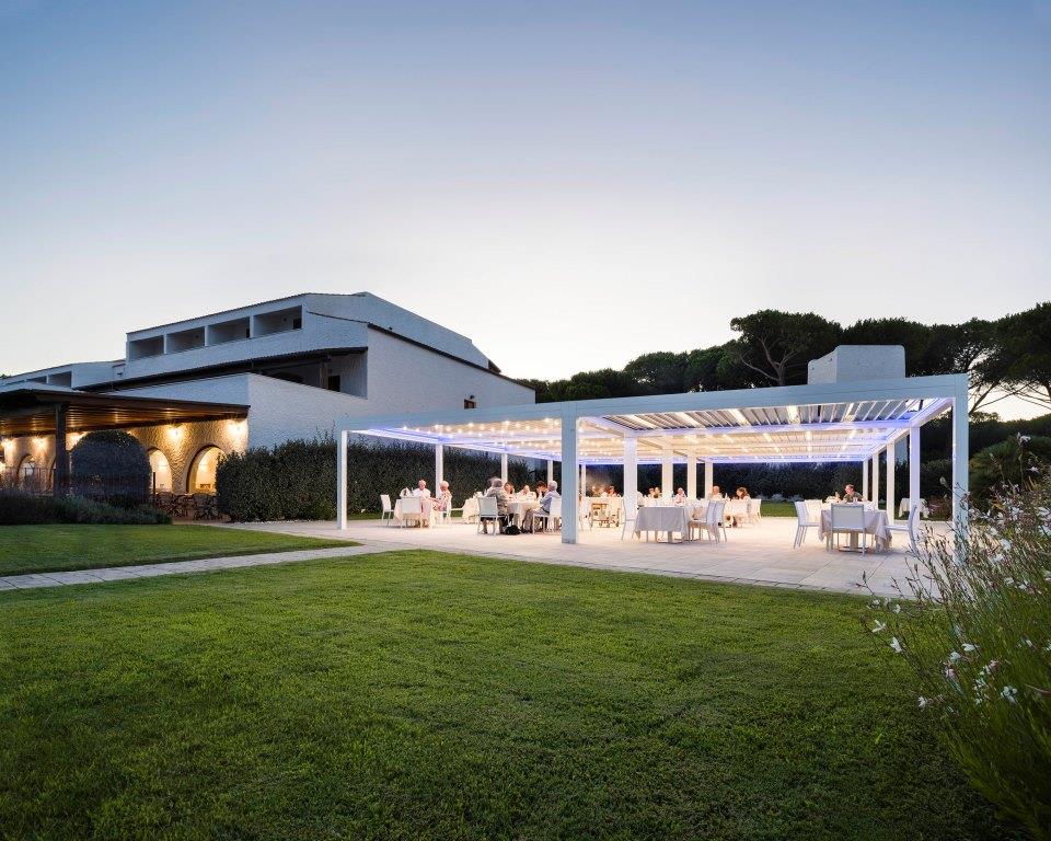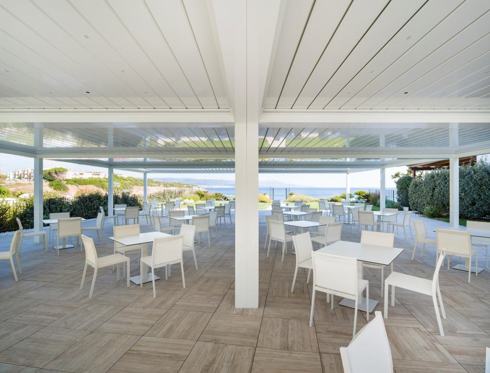 Francesco Masia, direttore dell’hotel, ne è entusiasta: “Magico è l’unico aggettivo che può definire lo spazio creato dalle pergole Gibus in questo contesto panoramico. Da tempo, volevamo realizzare una struttura fissa per valorizzare l’area esterna all’albergo, ma la posizione troppo vicina al litorale rendeva impossibile ottenere i permessi necessari. L’installazione delle pergole bioclimatiche – che per le norme urbanistiche non comportano alcun aumento della volumetria costruita – ha offerto la soluzione che stavamo cercando”.