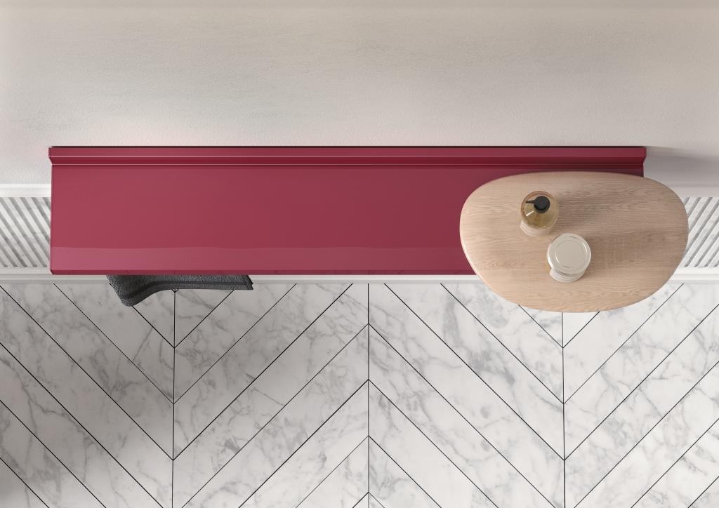 Un prodotto apprezzato per la sua componibilità e modularità si riscopre così ancora più funzionale, rovesciandosi e ampliando la sua presenza nello spazio. Grazie a un’ulteriore sperimentazione estetica e tecnologica il modulo in alluminio aumenta la sua profondità evolvendosi in una vera e propria mensola scaldante e aggiunge, nella versione più lunga, un ripiano in legno dalla linea morbida.