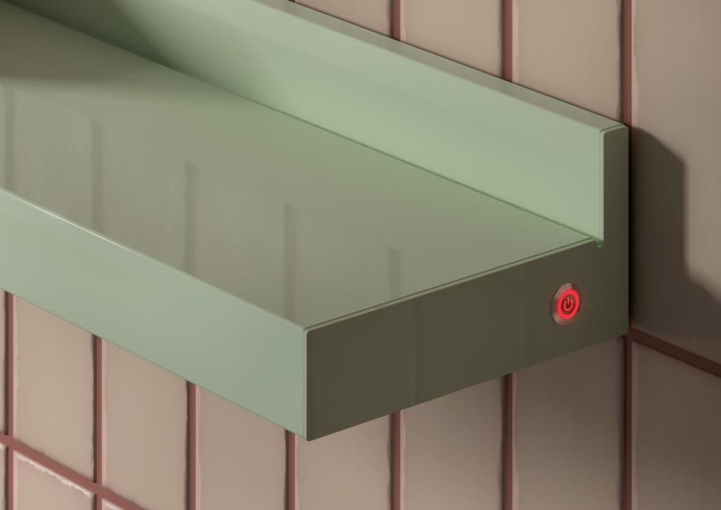 Una “mensola scaldante” sulla quale gli ospiti possono agevolmente appoggiare le salviette ripiegate, regalando così ordine all’ambiente bagno e, al contempo, riscaldando. Inoltre, il portasalviette sottile si adatta con efficienza agli ambienti ridotti, mentre il vassoio in legno crea con la sua linea curva un interessante contrasto di forma e materiali, prestandosi a essere un piano d’appoggio isolante su cui adagiare gli oggetti che non si desiderano scaldare.