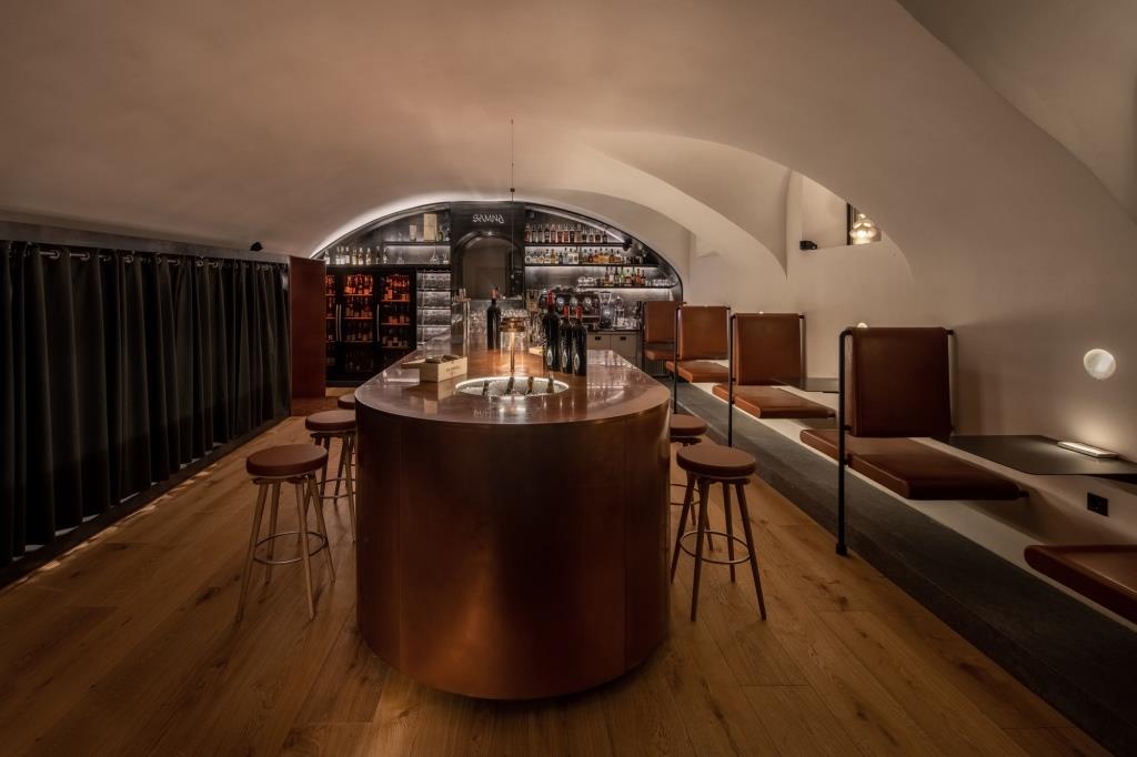 L’accesso alle cinque sale del Samna, che può ospitare fino a 120 persone, avviene da un’area reception/bar da cui sono raggiungibili i tre ambienti principali.