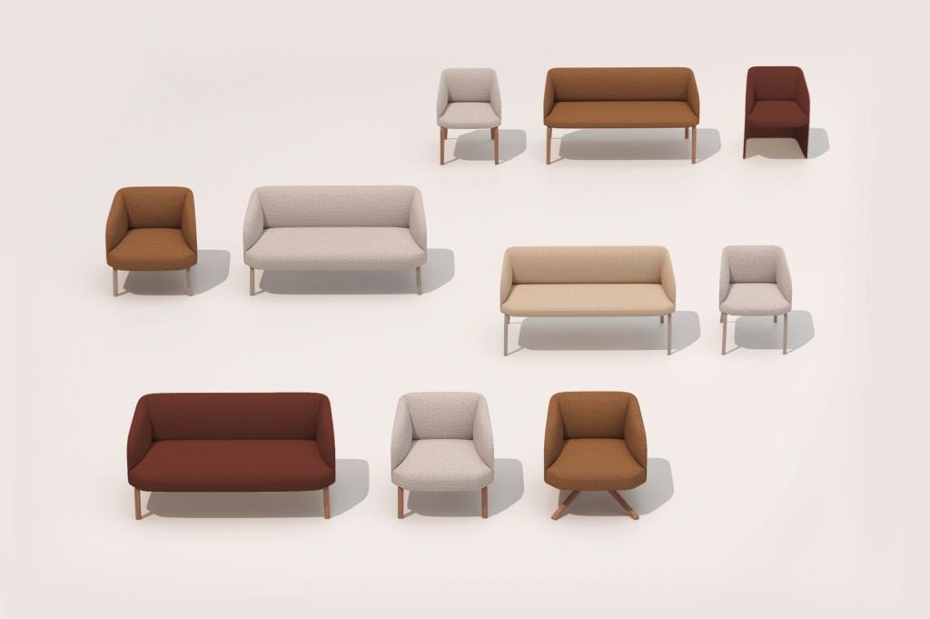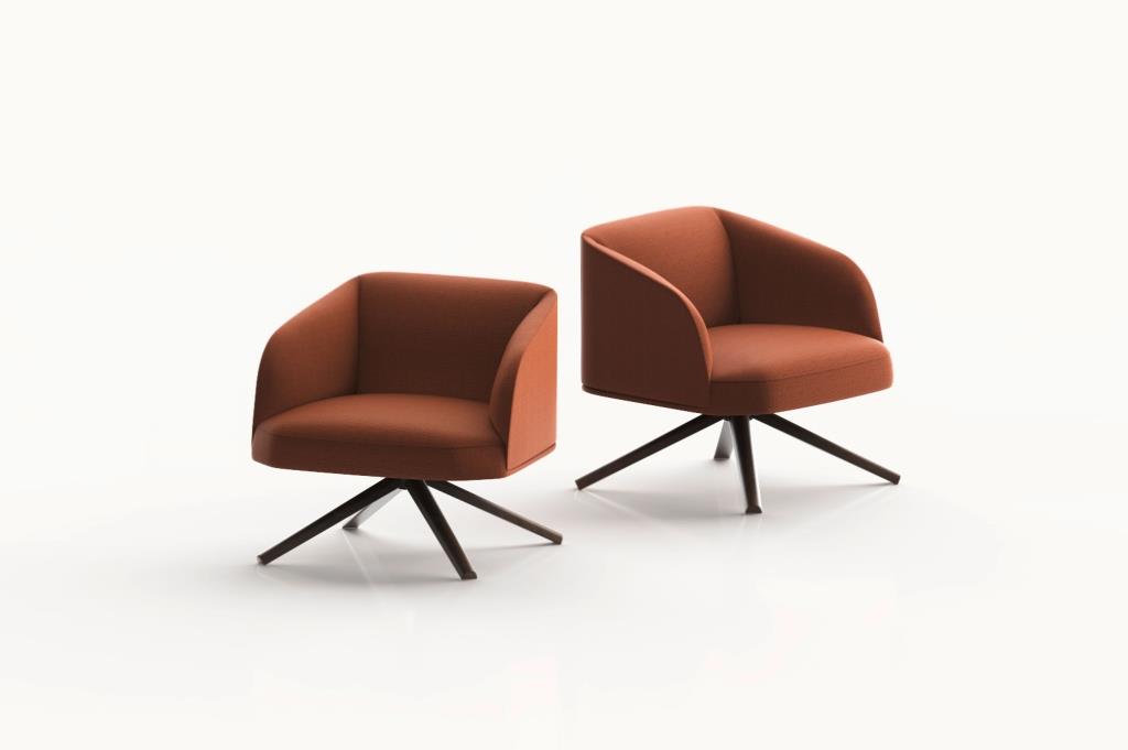 All’insegna della personalizzazione, per le poltroncine sono previste basi diverse: la lounge si può scegliere con base a trespolo in metallo sottile o in legno e la dining con base a trespolo o quattro gambe, sempre in metallo. Tutti i pezzi della collezione si possono rivestire in tessuto, pelle ed ecopelle.
