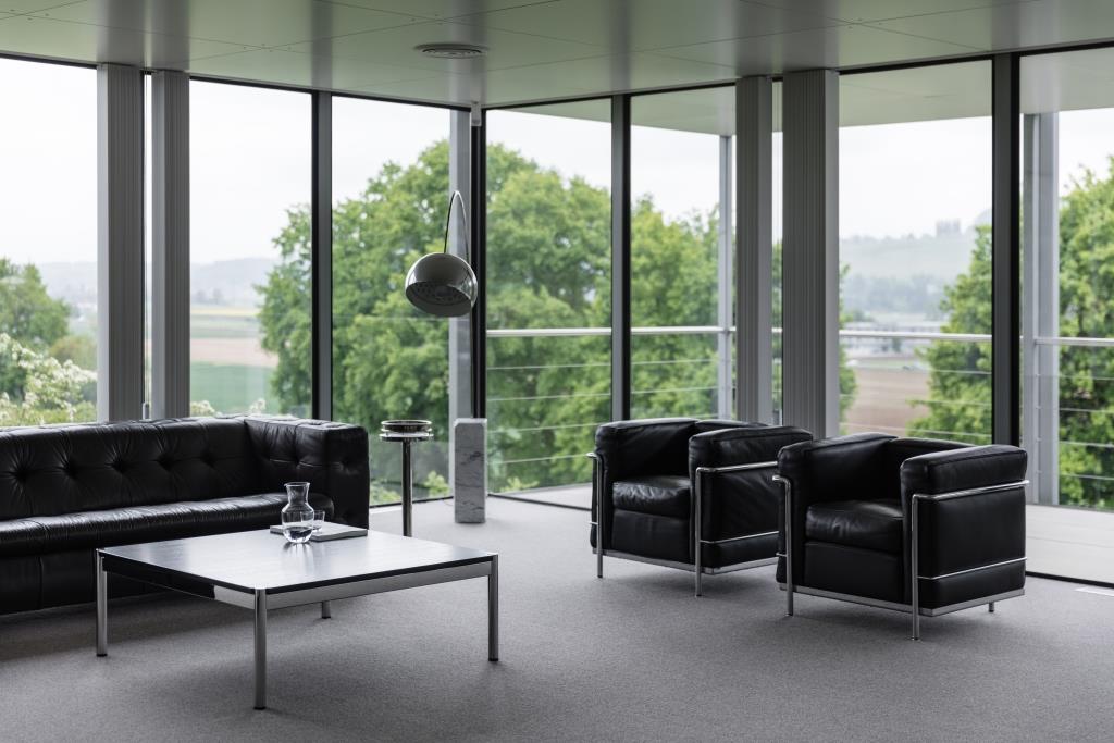 Con la decisione di realizzare uno stabilimento completamente nuovo, successiva all’ingresso di Paul Schärer, l’azienda compie un passo decisivo verso la produzione industriale. A essere incaricato del progetto, nel 1960, è Fritz Haller (1924-2012), un architetto di trentotto anni nato a Solothurn (in italiano Soletta), che ha lavorato nel 1948-1949 a Rotterdam nello studio di Willem van Tijen – protagonista con Jacob Berend Bakema del funzionalismo olandese del dopoguerra. Haller fa parte della cosiddetta Scuola di Soletta – il movimento svizzero che ha contribuito alla sviluppo dell’architettura in acciaio e vetro – e ha già costruito alcuni edifici scolastici, caratterizzati da una composizione che valorizza gli aspetti volumetrici.