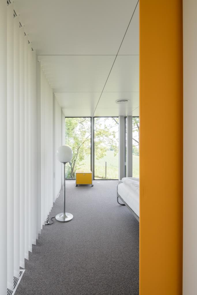 Oggi, dopo decenni di sperimentazioni, con il moltiplicarsi degli stili di vita e delle soluzioni abitative, questa casa in vetro senza porte e con le finestre fisse non ci stupisce, se non per il suo approccio disinvolto alle necessità di privacy. Ma alla fine degli Anni 60 doveva apparire almeno altrettanto sorprendente della sua sorella più famosa, Casa Farnsworth di Ludwig Mies van der Rohe (1945-1951). A differenza di quest’ultima però – che rimane un edificio eccezionale a partire dalla sua relazione con il paesaggio – Buchli si propone con un prototipo molto più accessibile, dimostrazione di un sistema costruttivo standardizzato che si può adattare a tutti i contesti, come il pendio di Münsingen, considerato dallo stesso Fritz Haller un sito di costruzione particolarmente complicato. Buchli viene ultimata in concomitanza con l’inizio della produzione dei mobili USM, che difatti vengono impiegati nell’arredamento, completando, come fossero piccole architetture nate dalla medesima logica, l’universo modulare della casa.